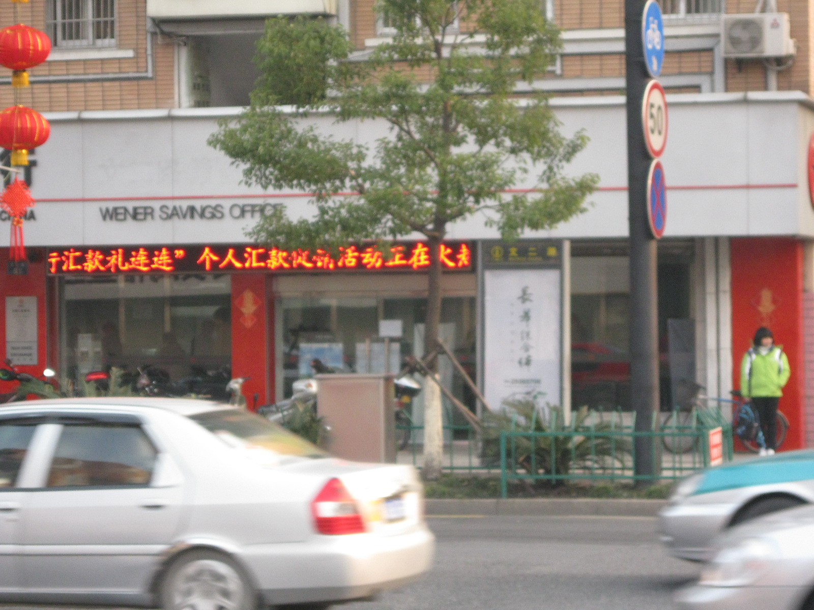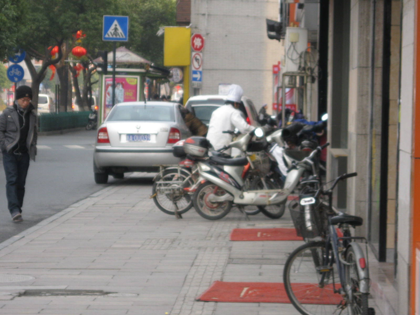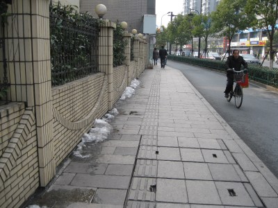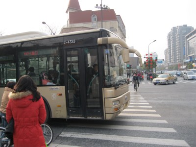 A bus! I know, very exciting. I wish I had audio to accompany this picture, because loudspeakers on the buses announce (in Chinese), “There are pedestrians around! Be careful!”