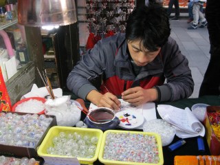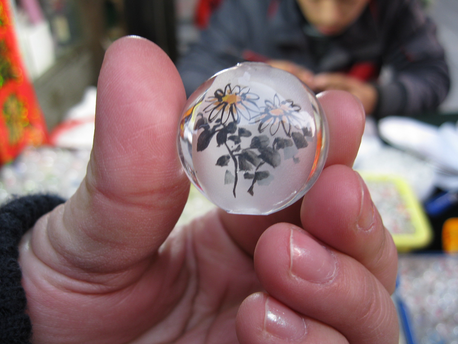 This guy was painting pictures inside these hollowed out marbles. He must have the patience of a monk.