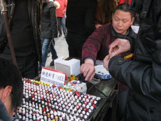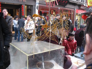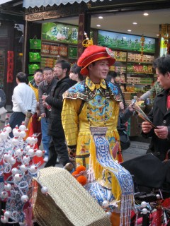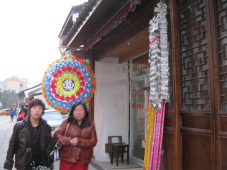 This man was engraving small ceramic animals with whatever people wanted on them. A woman behind him would then tie a Chinese knot through them, and they’d ready for cell phone or key chain decoration. I bought a small pig for me and a small dog for Matt (our Chinese zodiac animals) and had our names engraved on them. I can’t wait until we have matching cell phone decorations. Our relationship will finally be serious.