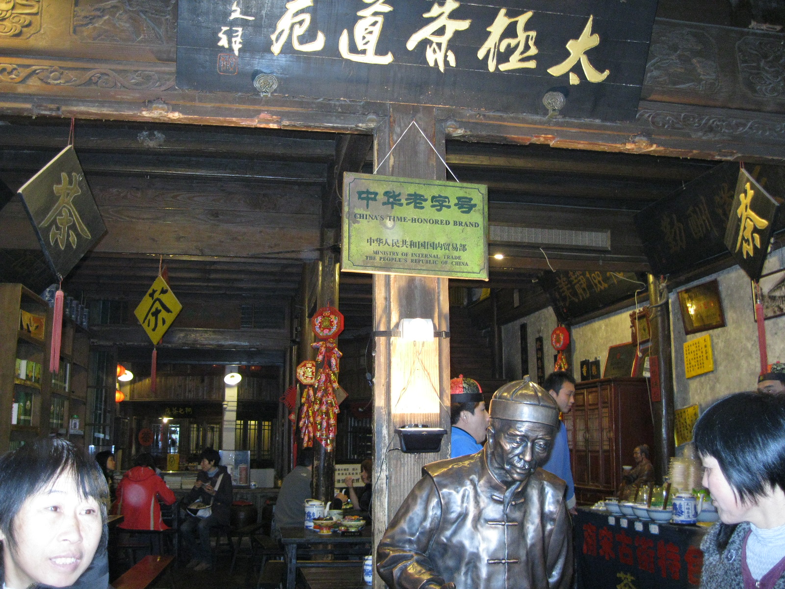 A tea house. I’ve mentioned before that Hangzhou is known for its Dragon Well tea; when the weather gets warm, I plan to visit one of these out in the country. I think it’s sort of like going to a vineyard: you get to enjoy the tea where it’s harvested.