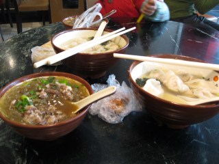 On the right is a bowl of pork and shrimp dumplings, and on the left is a bowl of beef soup with noodles made from sweet potatoes. Both dishes- especially the dumplings- were fragrant and hot and fresh. So, so good. I can see why this place is a Hangzhou must-do.
