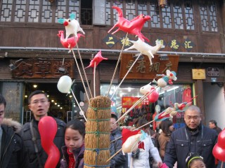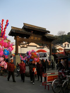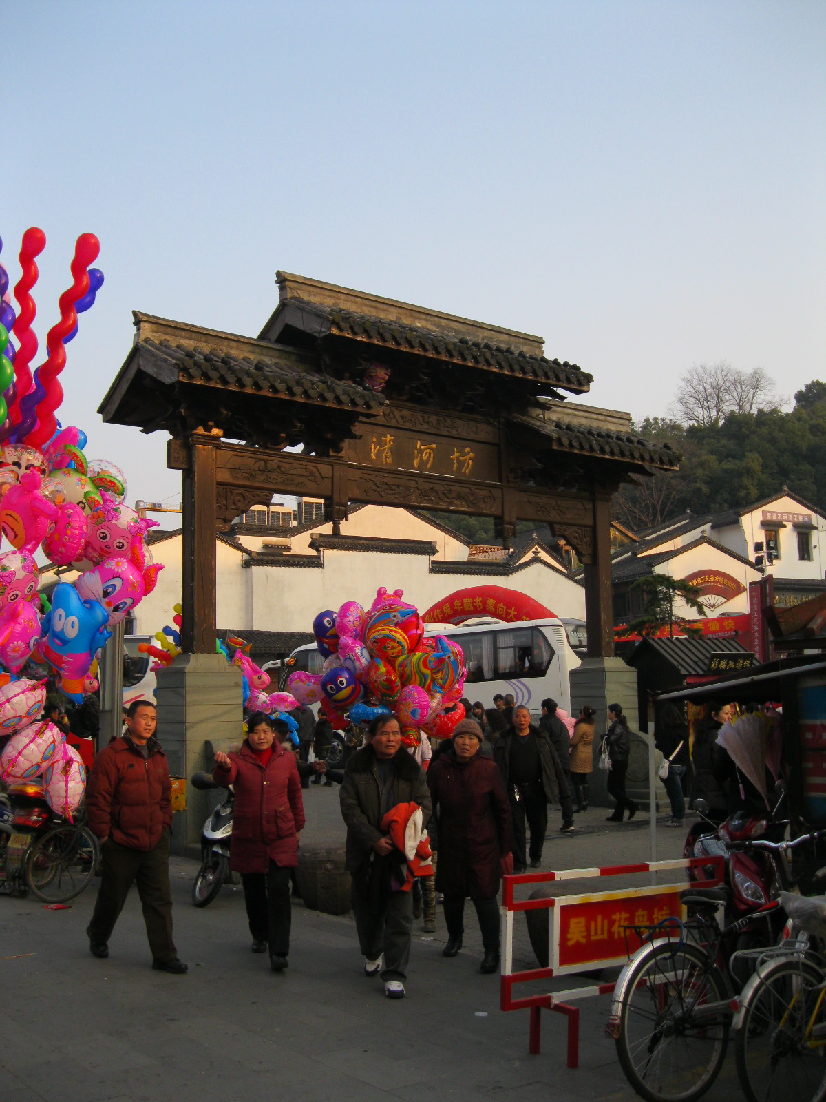 The gate to Hefang Road. These people with bunches of balloons are everywhere.
