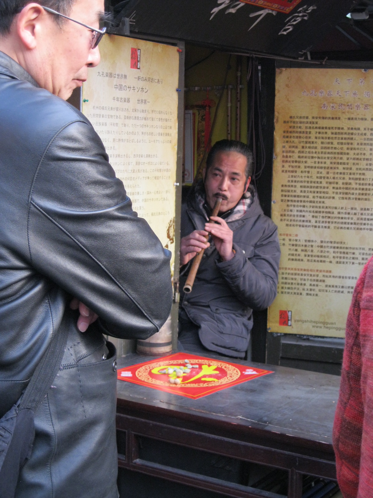 You can buy lots of traditional Chinese instruments on Hefang Road. This is a Chinese saxophone. It reminded me a lot of a clarinet. Alisa and Becca, you could both totally rock out on this.