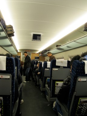 The train was spotlessly clean and roomy with wide windows and soft reclining seats, and it was warm. Which means I instantly fell asleep as soon as we started moving.