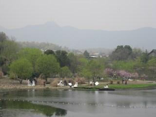 Over the next 3 days, families will celebrate Qing Ming, or Tombsweeping. I think the idea behind it is something like our Memorial Day: honor and remember your ancestors. Since we don’t teach on Monday or Tuesday, Sabrina, Trisha, and I are headed to Suzhou, a nearish-by town with (much like Hangzhou) a reputation for beauty (although it’s smaller). Since there is an “old China” part of the city and some reportedly amazing gardens, I hope to have a lot to write about on Tuesday- hence Qing Ming Part I. So enjoy your weekend, eat some tuanzi (you know, those green rice cakes with prune puree in the middle that we always eat during Qing Ming), and celebrate your ancestors. And take a picture in your wedding dress.