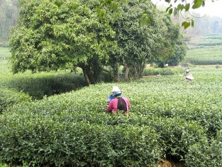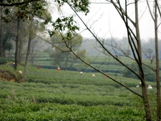 At some point, I ended up in these tea fields. Here I took off my headphones and was stunned by the quiet. Somewhere, one of the people harvesting tea leaves had stashed a radio that was playing some soft, dissonant Chinese music- old school Chinese music- and other than the occasional bird chirp, it was pretty peaceful. It was restorative to see so much green space.