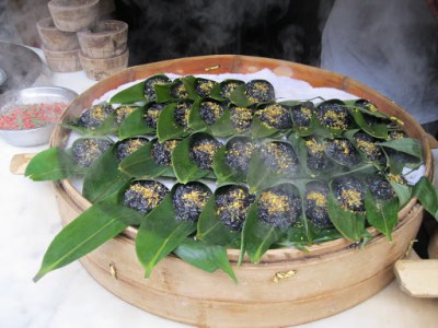 These banana leaves are stuffed with rice and steamed. I don’t often get these, but we tried one in Suzhou, and it was pretty tasty.