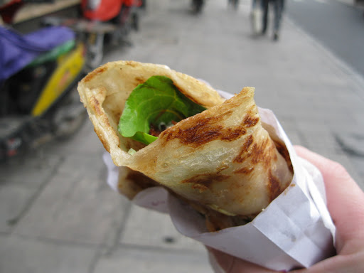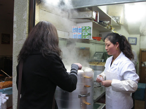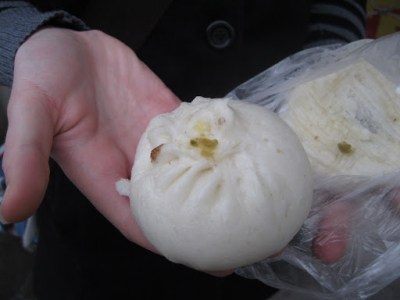 I’ll start with breakfast. On many mornings, Trisha and I (and now Matt) enjoy baozi, or steamed stuffed buns. You can find these in many varieties: stuffed with tofu, mushrooms, and spinach, or spicy noodles, or pork and celery, or pickles, or sweet red bean paste. All of them are pretty awesome, and even better, dirt cheap.