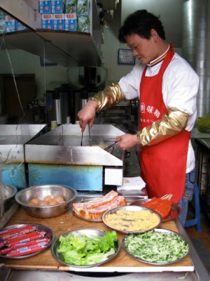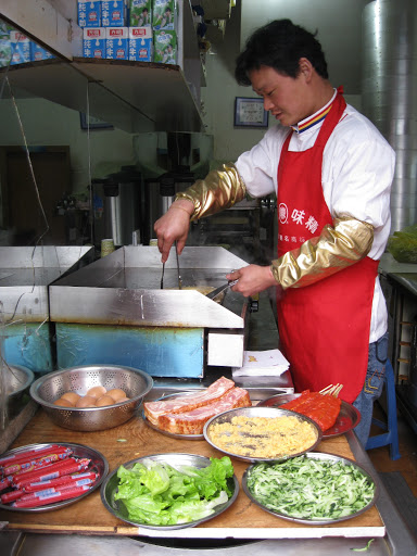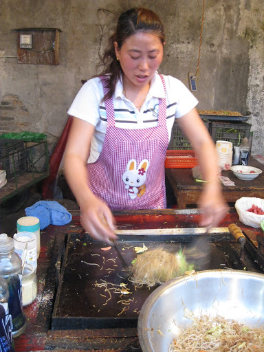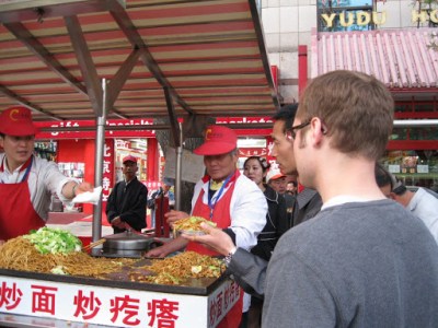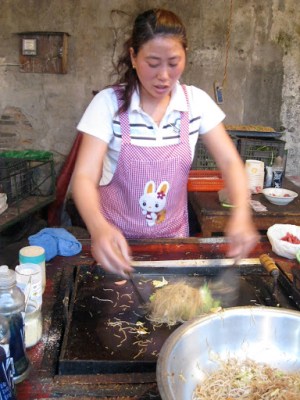 Down by campus, there’s an area we commonly refer to as The Corner, or University Corner. It’s this great little conglomeration of shops and street food stands. For 5 RMB, I can get a big bowl of fried noodles and veggies for lunch.
