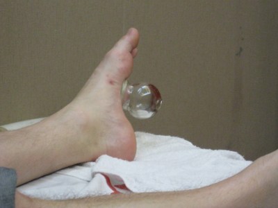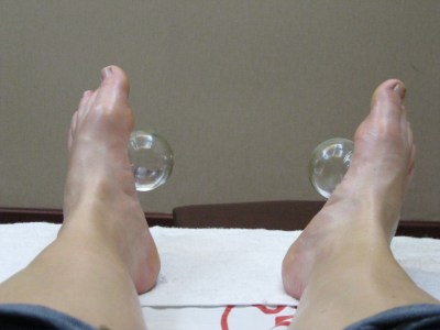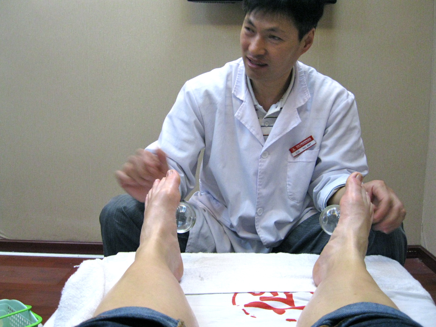 One of the massage techniques that our therapists used on us was what I like to call the Beijing Surprise, because it shocked the heck out of me. Near the end of my massage, my therapist pulled out these two little glass bulbs, sprayed some sort of alcohol into them, flicked open his lighter, and before I knew what was happening, he’d suctioned one glass ball of fire to the bottom of both of my feet. It was crazy hot, even after the short flame extinguished itself, and kind of painful. But a productive painful. I felt like he was exorcising my foot demons. I had a nice pair of matching red welts when he was done.