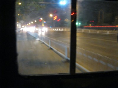 The view from the inside of Tin Can, which is what Matt called it. I called it Death Trap. Matt disagreed, pointing out that our driver considerately slowed down before running every single red light en route back to the hotel. And yes, we’re facing backwards into traffic.