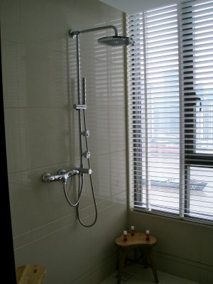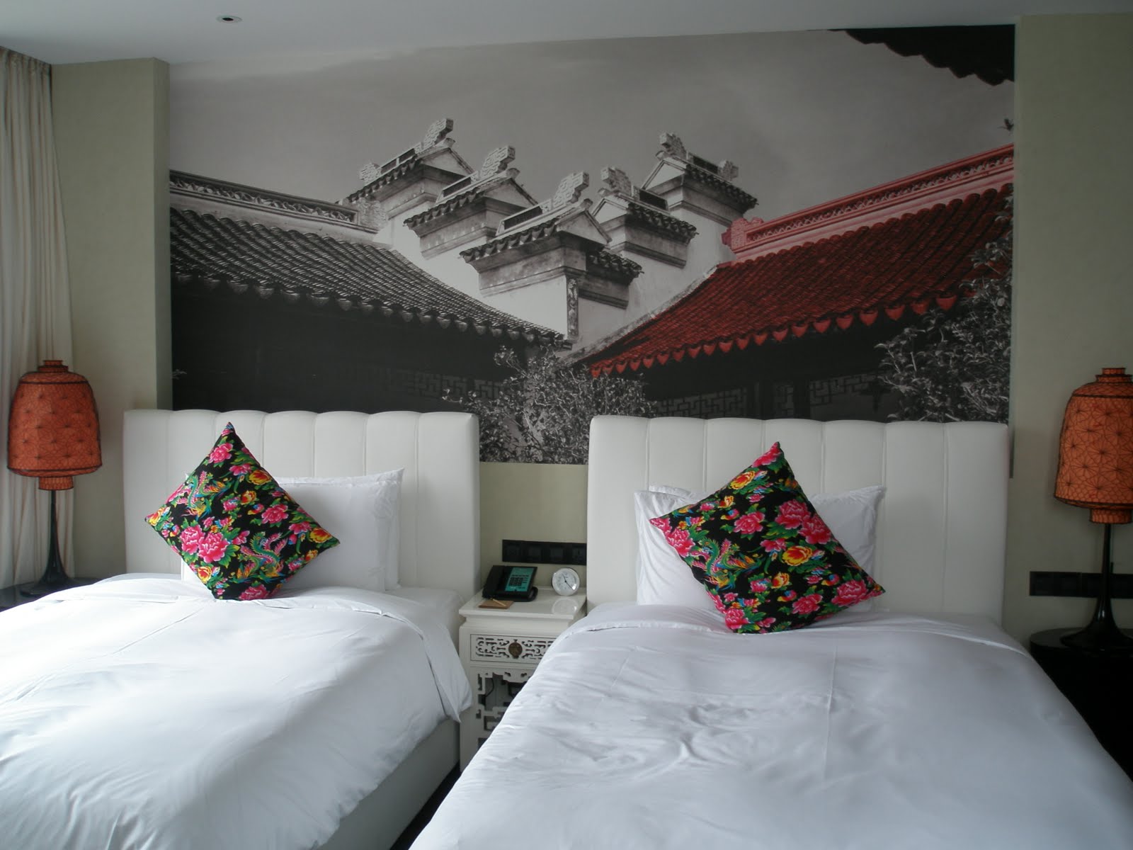 In need of a little pick-me-up after Matt’s departure, I spent last weekend in Shanghai and treated myself to what turned out to be the nicest hotel I have ever stayed in (so please excuse my nerdiness in posting lots of pictures of the room). I wanted to swim in a pool, work out in a fitness room, sleep on a soft bed, and maybe even watch some Western TV. China has taught me many things, among them: I don’t need to stress out about work the way I had been; I need to make room in my life for the things I love, like writing; and it’s important to take care of myself. While the room was expensive and I certainly could have done more touring around the city, I felt completely rested and calm and generally buoyant when I made it back to Hangzhou on Sunday afternoon.