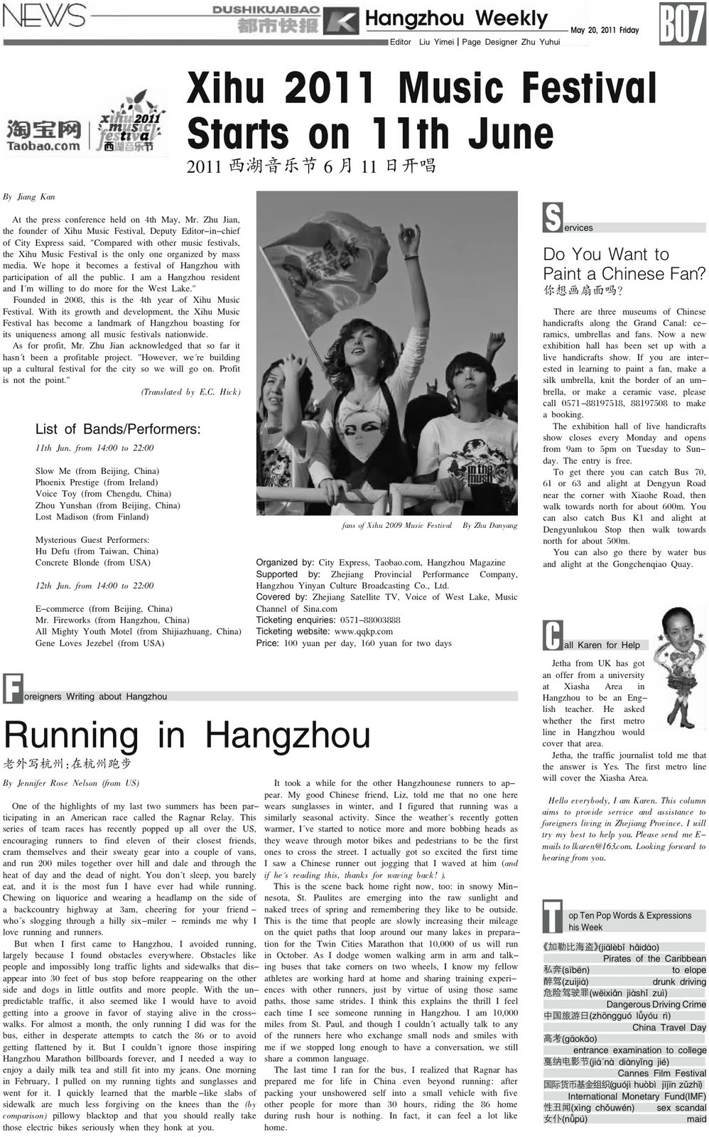 I feel quite lucky to have been published twice now and to have orders for more columns; Karen said that she’ll take as much writing as I can give her before I leave China because she’ll continue to print it. She even asked me to move my planned trip to Huangshan next weekend so that I can cover a photography event for them instead (I was flattered, but turned her down).