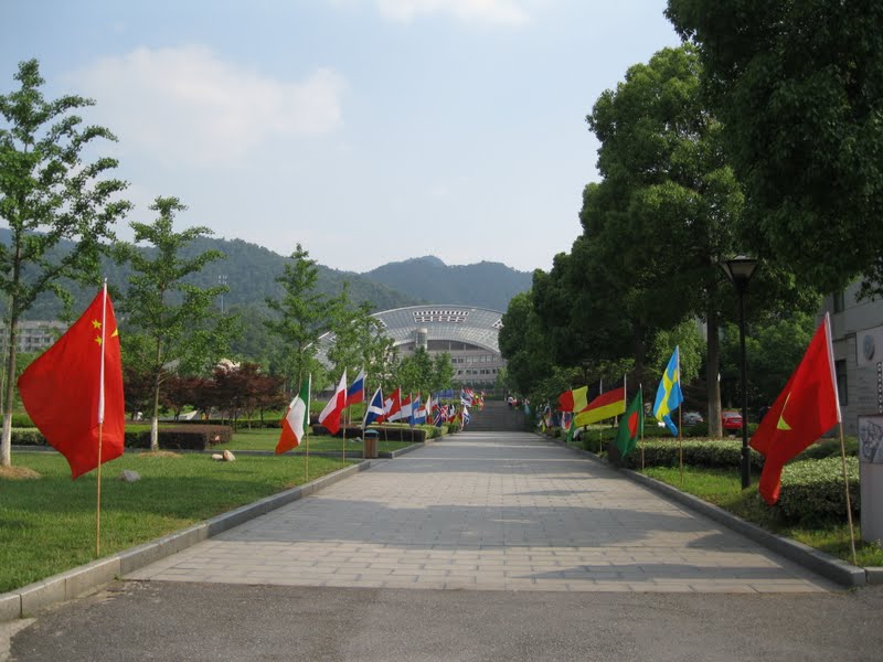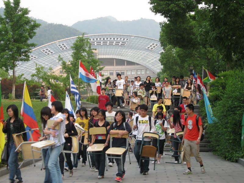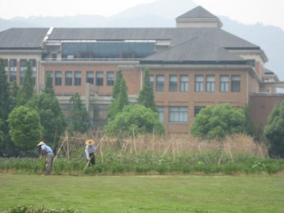 To keep ourselves from going crazy along with the students, Trisha and I took a milk tea break after 2nd hour and walked around one of the pretty, feng shui-ed university campuses near HFLS.