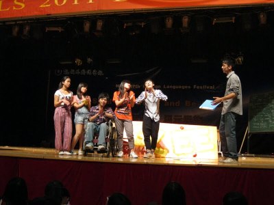 The 6 hosts of Drama Night.  The boy on the far left is my student, William.  He speaks impeccable English and as a Junior 2, I’ve been told he’s something of a celebrity on campus.  He’s also got an incredibly sweet disposition.