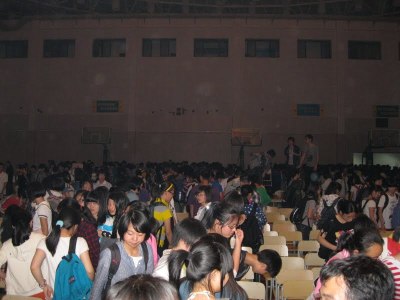 Walking back to campus, we found wave after wave of students bringing their own seats to the gymnasium for the performance.