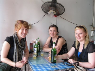 Later that afternoon, Trisha and I walked with Claire, a visiting teacher from the UK, down to the corner for one of those point-at-the-all-Chinese-menu-and-hope-for-the-best meals.  Between the three of us- red hair, blue eyes, blonde hair- we were the weirdest-looking bunch of diners at this place.