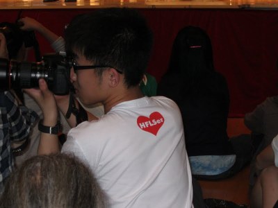 I kinda want one of these shirts.  There was a whole cadre of students sitting on the floor in front of the stage with giant SLR cameras.  The Chinese paparazzi.