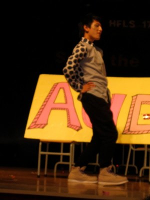 Before I share pictures of the performances themselves, I should explain that the students record themselves acting and then lip-sync to their own voices during these plays, although the musical numbers are usually professional recordings.  It threw me at first, but I wondered if it’s almost harder to lip-sync emotionally than it is to perform live.  Either way, I was proud of the students, and in all of their nervous energy, they were really enjoying themselves.  It was great fun to watch.
