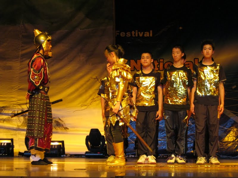 At one point during Mulan, a soldier threw down his mug and it shattered on the stage; one scene later and with the pieces of mug unswept from their original positions, kid-soldiers were falling all over the stage in mock-death.  Each blast of the confetti canons added to the debris and went untouched as dancer after dancer discoed onto the stage for Mamma Mia.  The Glee singers darted in and out of the spray of sparks just inches from their heads and arms.  It occurred to me that American teachers and parents would probably have tandem strokes if they saw this, but as I thought back to the sword-fighting and cacophonous crossfire from my classes earlier in the day, I figured this night was exactly what everyone needed.