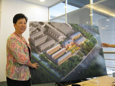 Ms. Xu with her plans for a new high school/middle school joint campus.