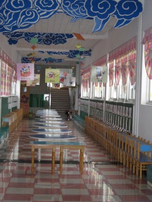 The kindergarten stop made more sense, especially once we got there. The woman who runs it- I think her title is headmistress- used to work at HFLS and knows Shen well. We toured the school, which was adorable in its miniature-ness. It’s called a kindergarten, but here that means kids ages 2 through 5 attend the school. Some of them spend 4 nights a week on campus, including students as young as 3.