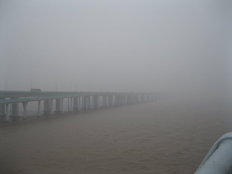 On Monday last week, Bao sent us an email saying that Shen (his boss) was planning an overnight to the Hangzhou Bay Bridge on Friday; did we want to go? Um, absolutely. Anytime the school takes us anywhere, they treat us like we’re kind of a big deal. And after googling the bridge, I figured I’d at least get some good pictures out of it. So once our last classes of the week were over, Trisha, Ian, Claire, Shen, our driver, and another teacher- his English name is Wayne- and me piled into a van and headed to Cixi.