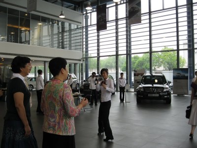 Ta-da! Then I understood the next stop to Mercedes. We walked into this giant dealership to (once again) the click-click of cameras in the hands of white-gloved employees. This is where we would meet Ms. Xu, the business mastermind of this operation and the education group.