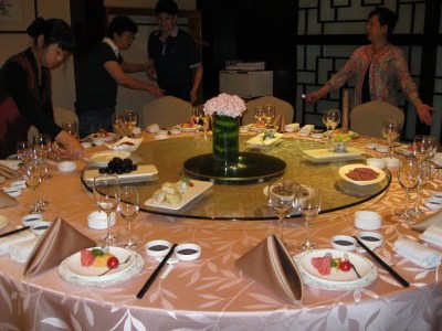 We left the dealership and thanked Ms. Xu profusely for her generosity, not expecting to see her at lunch, which was our next stop. Turns out that she and her family (her daughter, a former HFLS student, and her husband, who looked every bit the I’m-going-to-wear-a-trendy-t-shirt-and-ripped-jeans-because-my-wife-is-the-wage-earner-and-I’m-chasing-my-dream-of-fronting-a-rock-band husband) were treating us to what turned out to be the most extravagant meal I’ve had…probably in my whole life.