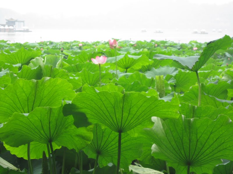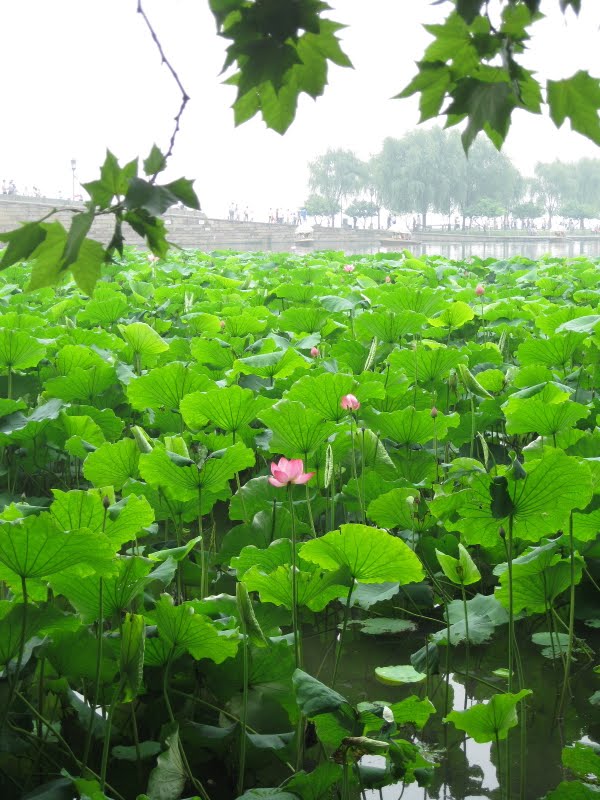 And today, on my last day in Hangzhou, I finally finally finally saw the lotus blossoms.  Just a few early blooms, but their timing was perfect.