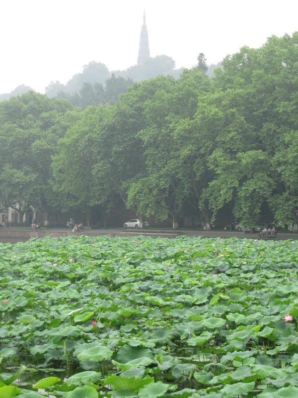 Trisha and her sister left this morning for Beijing, and the apartment felt too empty, so I took one last walk down to West Lake.  The weather was overcast, hazy, and reminded me of the first time I saw the lake.  Having spent lots of time on Lake Superior and coming from the Land of 10,000 Lakes, West Lake has been a steady source of comfort here.