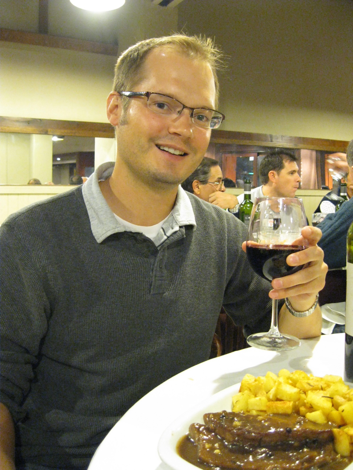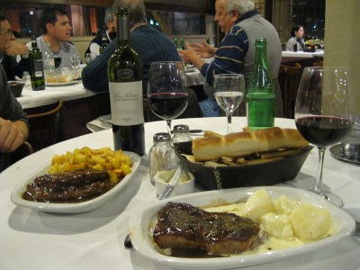 My first impressions of Rosario are few and scattered, but the city lies next to the Parana River, is lined with grids of cobblestone, and adorns itself with monuments to the bandera nacional, the Argentine flag. It looks not unlike a cozy European city. It’s midwinter here and the air feels like early November. I don’t have my coat with me yet, and though most others are bundled up, I’m comfortable in my cardigan. The only exploring I’ve done so far is to El Viejo Balcon, a parrilla restaurant that Matt really likes for its properly decadent Argentine steak. We ate ourselves into matching protein comas.