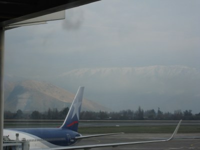 A hazy view of the Andes from the airport in Santiago.