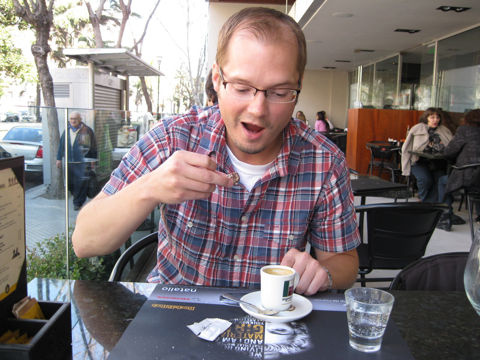 Matt’s been on several solo trips to Argentina and because of Skype, I can tell you that when he is here alone, on most nights he’ll do a little foraging for dinner and then either call or video chat with me. I’ll force Vilas’s face into my webcam, he’ll show me the crazy water pressure of the bidet, and then we say “I love you” and fall asleep on our different continents. Though I appreciate a bidet stream so intense it reaches the ceiling as much as the next person, it has been so much more fun for me to experience Rosario from this side of Skype, and I know Matt’s enjoying having a significant other on his arm, if only because I can help point out little piles of perro poo on the sidewalk. As you’d expect of a city that loves dogs this much, there is a lot of poo.