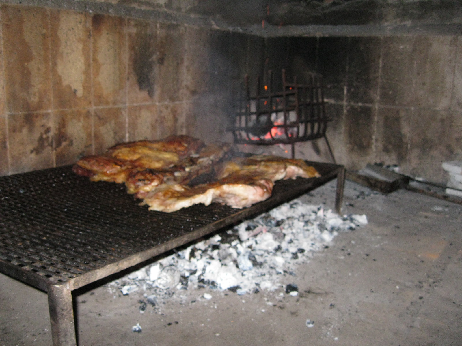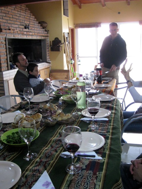Sunday we reentered adulthood and spent the day with two other married couples. Matt’s coworker, Gustavo, invited us over to his home for asado, Argentine barbecue. Gustavo and his wife have a pair of daughters and a woodsy, rustic home with wide-planked wooden floors and cowhides on the walls. They also have a courtyard that separates their main home from this cozy cabin with a built-in parrilla, which is where we ate with his family and another coworker, Alberto, his wife Claudia, and their two boys. I thought the kiss greeting was sweet with grown-ups, but I didn’t predict how utterly charming it would be with a 2nd-grader. Again, these kids are much more sophisticated than I’ll probably ever be!