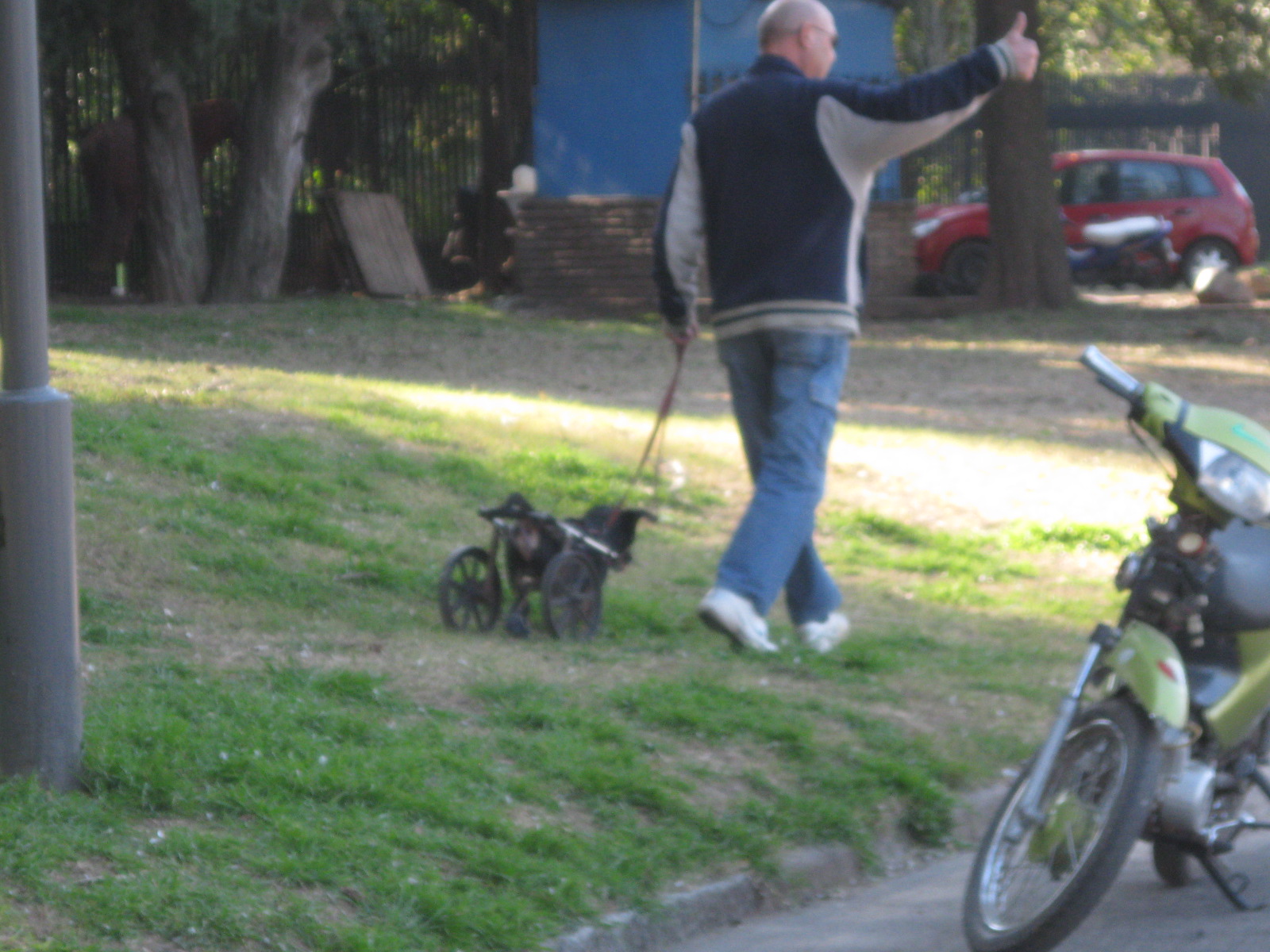 Doggy wheelchair. The poor thing had an injured leg but an obviously loving owner.