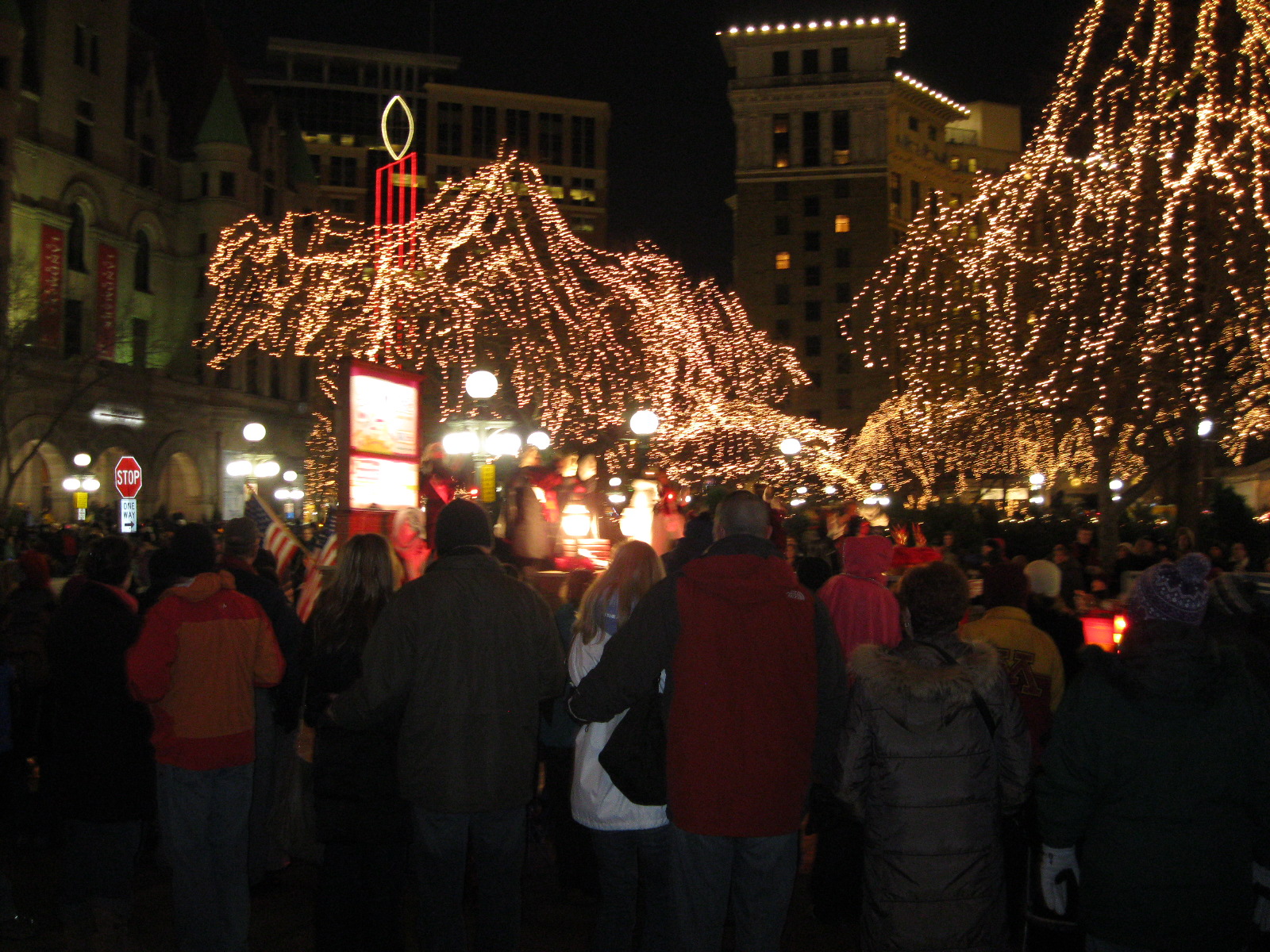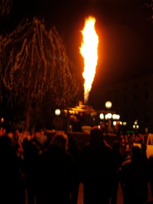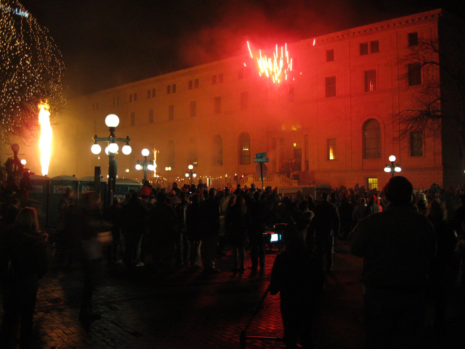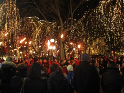 Last weekend, we celebrated St. Paul’s Winter Carnival, a hometown festival that would make the Chinese proud. These pictures are of the Torchlight Parade at Rice Park and the Vulcan Overthrow on the step of the library.