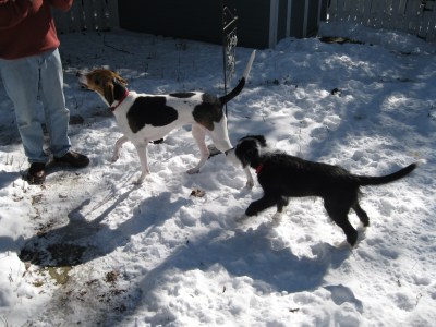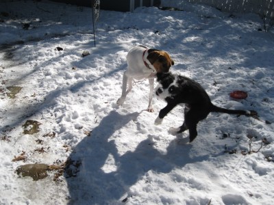 On Friday, Matt and I made the spontaneous decision to head out of town for the weekend to visit my parents. We called my dad to make sure they weren’t busy and surprised my mom on Friday evening by ringing the doorbell unannounced. Vilas got to spend time with my parents’ new puppy, Manny (both are currently passed out, having retreated to their own corners after hours of wrestling). Yesterday we went to a chili cook-off as part of Wausau’s own Winterfest. I got to see my sister, try on my in-progress wedding dress which is being made by my talented mother (it’s true- the dress from Shanghai works only as a funny story, not an actual garment), and make venison steak. Even when I had to take a break from the fun to grade Huck Finn quizzes, I laid down on the floor with my pen and listened to Matt and my mom play Scrabble, to my dad help my sister with her taxes, to the dogs quietly knock each other over, and I was still very much present.