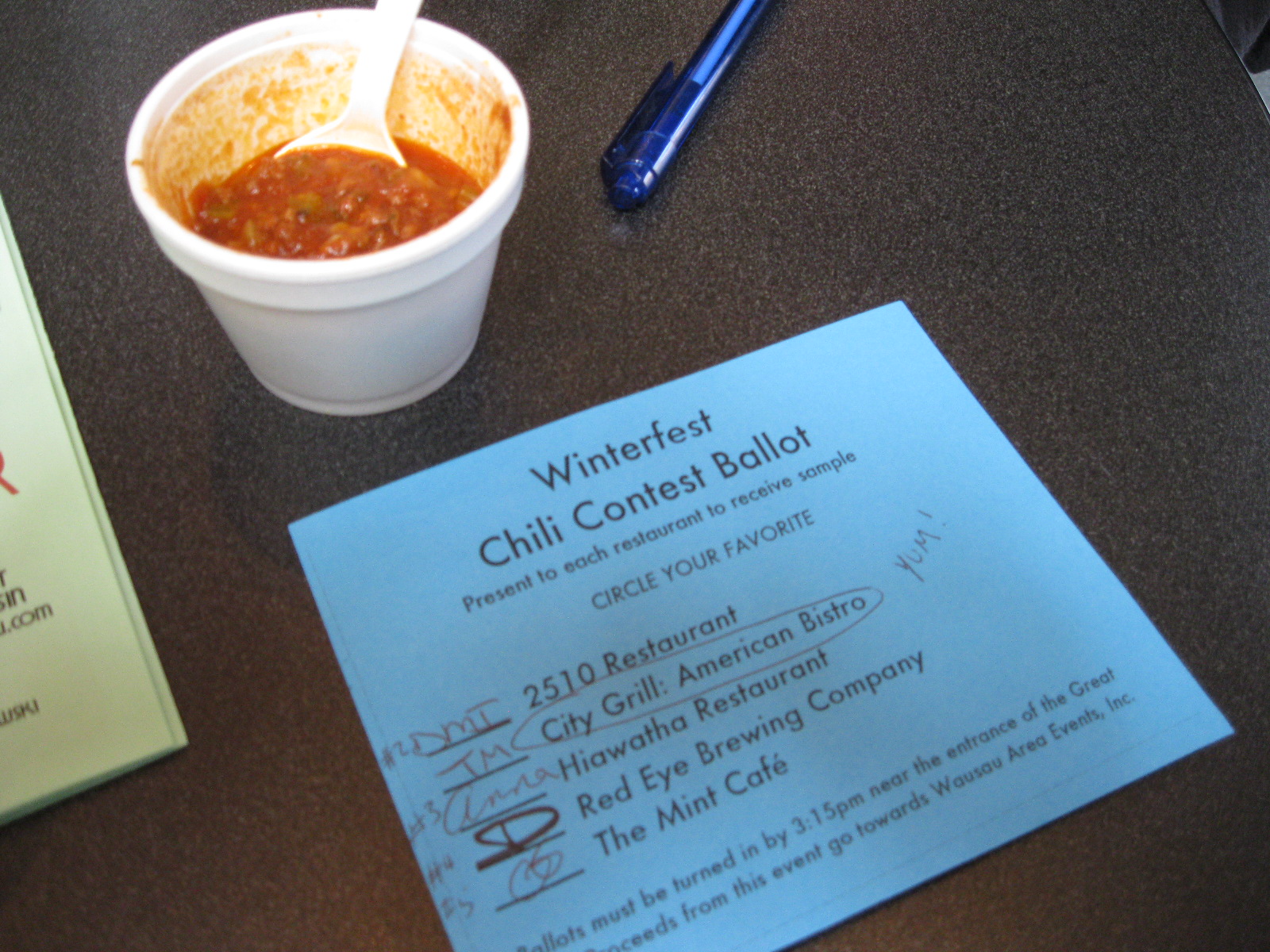 Alisa with City Grill’s white chicken chili. Dad and Matt voted for this one.