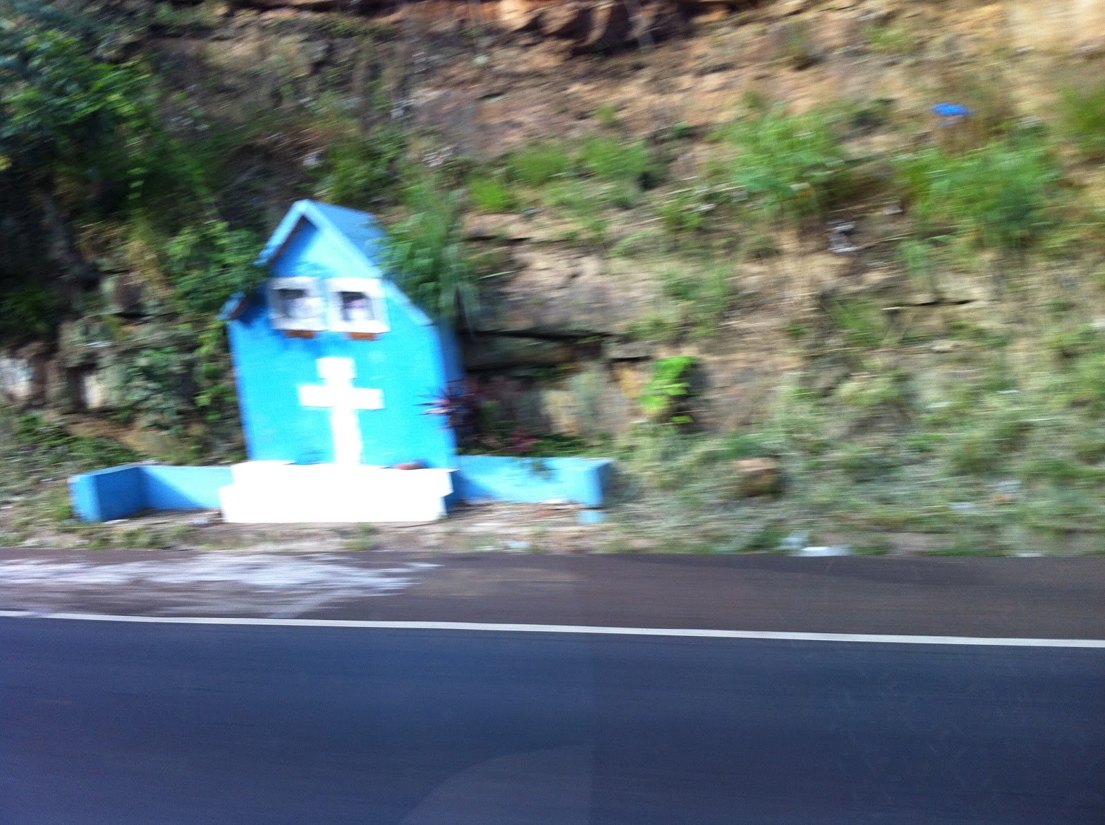 The other thing that really made me nervous while driving in the country was the insane amount of roadside memorials. I tried to get some good pictures, but the few I got are blurry and not of the most elaborate set-ups. I’m talking four-foot high houses with electricity and statues.