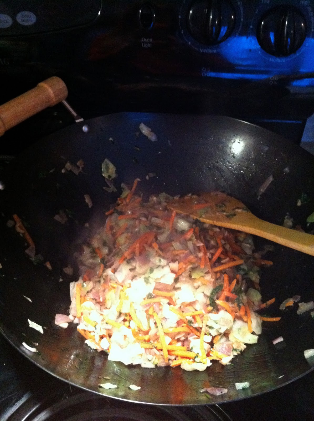 Much of our time was spent on potstickers. If you’re ever looking for a fun little group kitchen activity, totally make these. You can get the wraps at pretty much any grocery store (I picked ours up at Rainbow). For the stuffing, we woked up some shredded carrots, cabbage, cilantro, shiitake mushrooms, garlic, and onion. These were vegetarian, but you could also add pork or maybe some scrambled egg pretty easily.