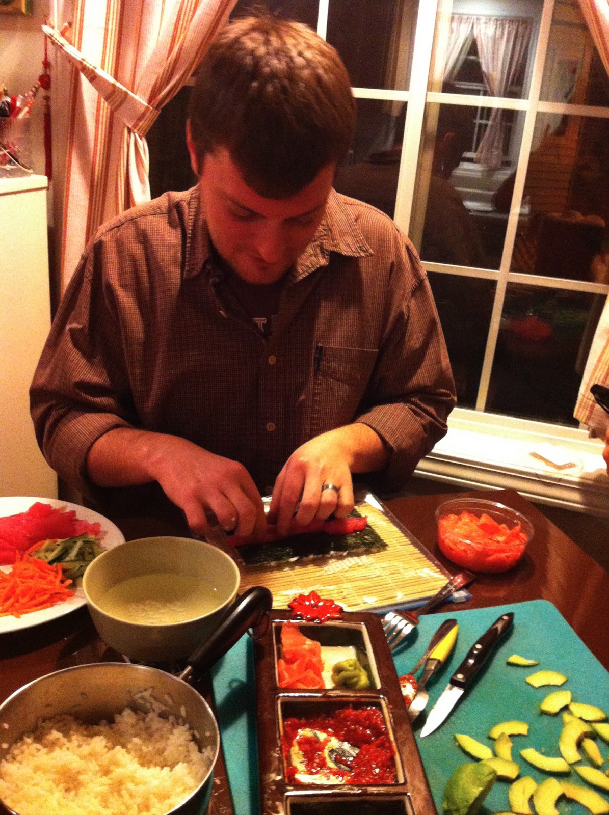 And oh, we weren’t done yet. After munching on our hot dishes, Matt taught Lyssa and Riley how to roll sushi.