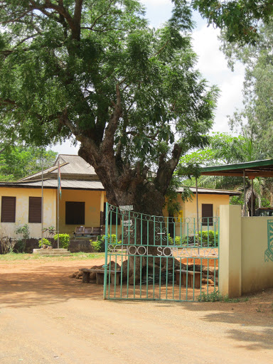 Anyway, it took just under an hour for us to reach Somanya. The road was well-paved and the many speed bumps meant we never went too fast or passed many other vehicles. Probably 30 minutes into the drive, an old croaky voice started crowing. Everyone giggled and looked around for the culprit- first we thought it was a bird, then maybe a baby goat, but we finally settled on chicken, just chilling in the back seat.