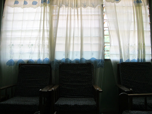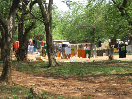 We asked the guard to show us Mr. Gabby’s house- he’s moved since Matt left, but he still lives on campus. The school opened up as we walked: many one and two and four-story buildings, some open-air, most accented with bright green and yellow paint. Screened-in windows open. Roomy courtyards. The students we saw were wearing their Sunday uniforms, their church clothes. The girls are not allowed to have long hair (and truly, in that heat, I was mystified by the women who chose to have long hair and wigs), and they looked very pretty in their white cotton dresses with sweet cap sleeves and peter pan collars. I instantly wanted one.