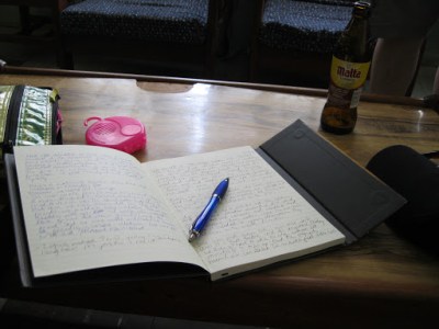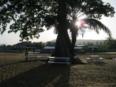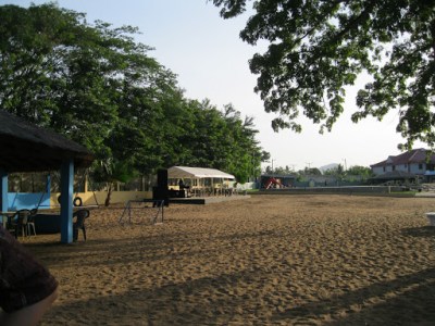 We drove for probably 45 minutes. Sometimes the road was paved, most of the time it was dirt, and occasionally it was washed out to shallow pits of sharp rocks. The mountains got closer, and soon we pulled off into the parking lot of a beach club. This, Gabby said, was new since Matt left. Built in 2010.