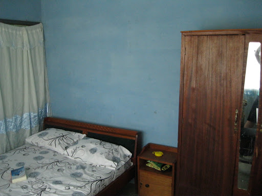 When we felt a little rested and rehydrated, Gabby and the student took us and our bags to the bungalow we were going to stay in. It’s the same house Matt lived in when he was first in Somanya. It has a living room, a kitchen, two bedrooms, a bathroom, and a shower room. No running water, but a rain barrel-sized container in our kitchen was filled to the brim with water we used to bathe and to flush the toilet. It was warm inside, but breezy and shady. I asked Matt how much it was going to cost for us to stay there, and he said, “Nothing.” Gabby had filled our fridge with mango juice, water, and Malta (nonalcoholic drink made by Guinness with “Goodness, Energy, Vitality,” which tastes like a chocolate Tootsie Pop). I felt like we were home.