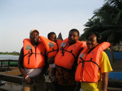 Suddenly, we were all wearing life jackets, including Enam, whose life jacket was adult-sized. Because the boat can hold 14 people, Gabby invited two South Africans who were looking with interest at the boat. “Come with us!” he said. “Let’s make it a party!”