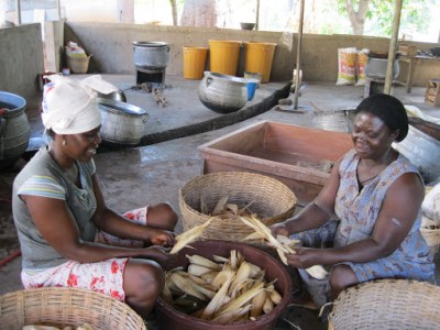 | Auntie Emma and her friend are making kenkey. More on this later. |