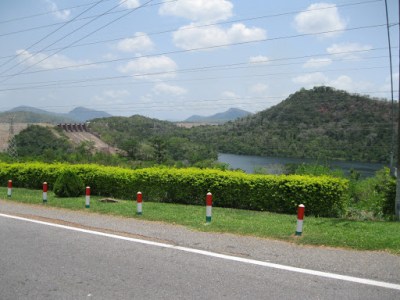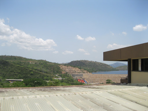 When we got to the factory, guards had to open the locked gate to let us in. There was a bronze placard out front with Chinese characters on it. The factory makes huge bolts of fabric, and the stuff we were picking up was personalized with Yikrosec’s name. While Auntie checked the order, the rest of us headed to the Volta Dam. We weren’t able to get any closer than a roadside vista, but it was massively impressive. The dam was built shortly after independence, and, as you might remember from my previous post, it powers all of Ghana and parts of neighboring countries, too.