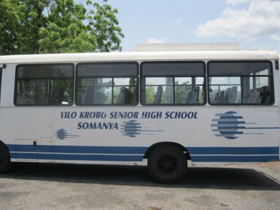 The drive was interesting and scenic. We were much higher up than the folks on the street and in other cars- lots of waving at the obruni. The streets of the three or four towns consecutive to Somanya are quite narrow and break off at odd angles. As a pedestrian, you are caught between the traffic that rushes by, whisper-close, and the moat-like trenches that edge all streets and most buildings. Driving in the school tro reminded me of that scene in HP3 when Harry rides the Knight Bus and it jumps the curbs and squeezes through impossible spaces. There is a rhythm and pattern to the traffic, but not knowing it, I was just generally astonished to pass other cars unscathed.